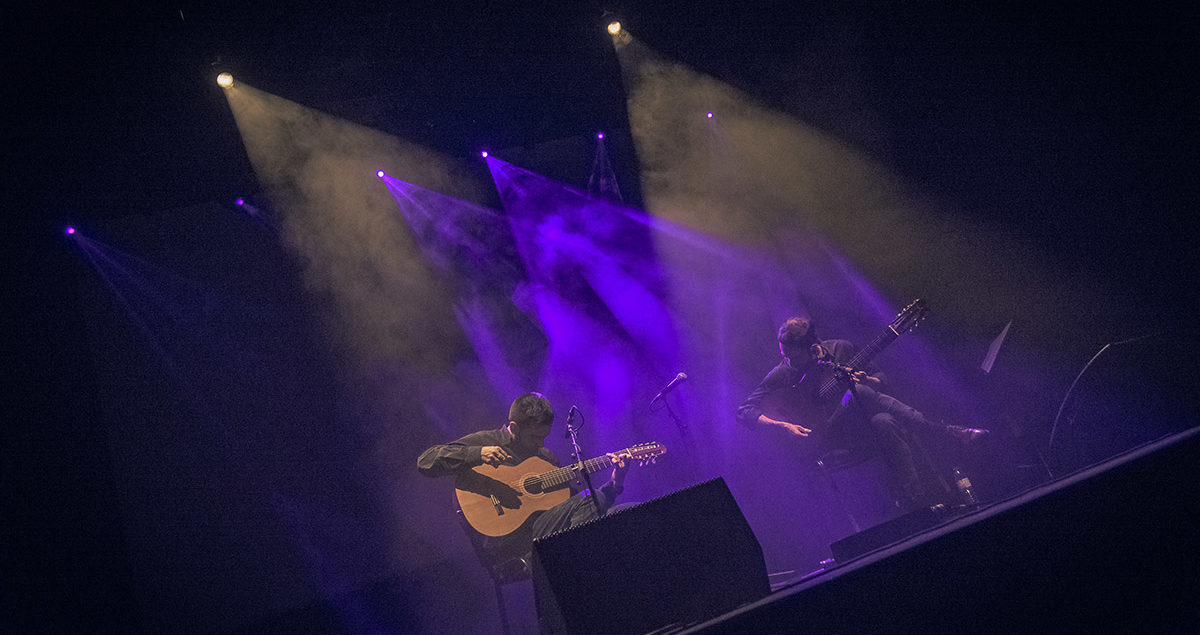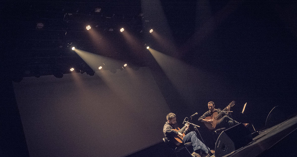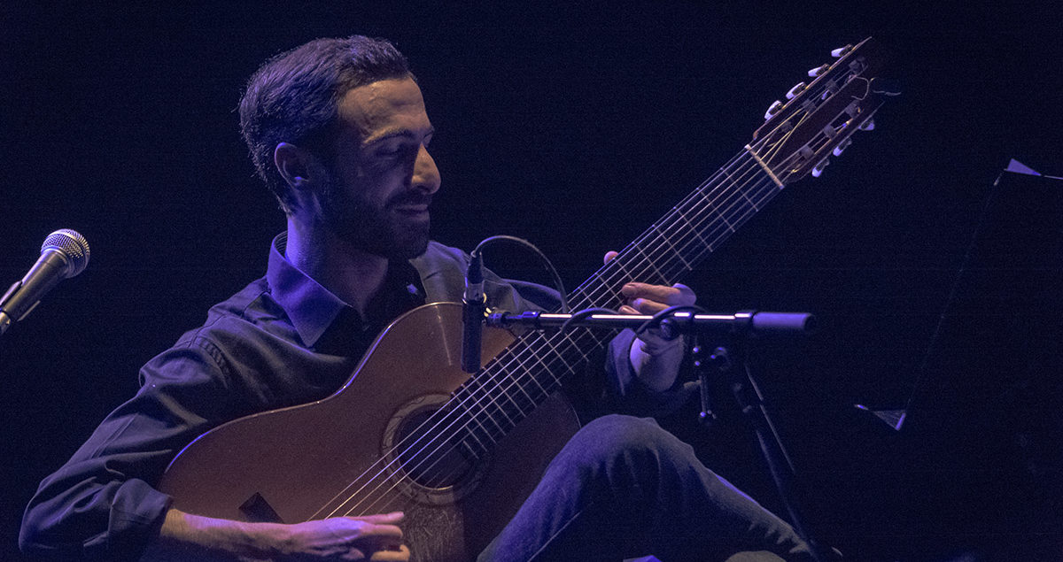 Vozes da guitarra é uma viagem por três universos musicais distintos sendo a guitarra o fio condutor entre eles. Neste concerto o ouvinte será convidado a conhecer o papel da guitarra enquanto instrumento de acompanhamento e a percorrer os caminhos das cordas ao som do Fado, Choro, Mornas e Coladeras.